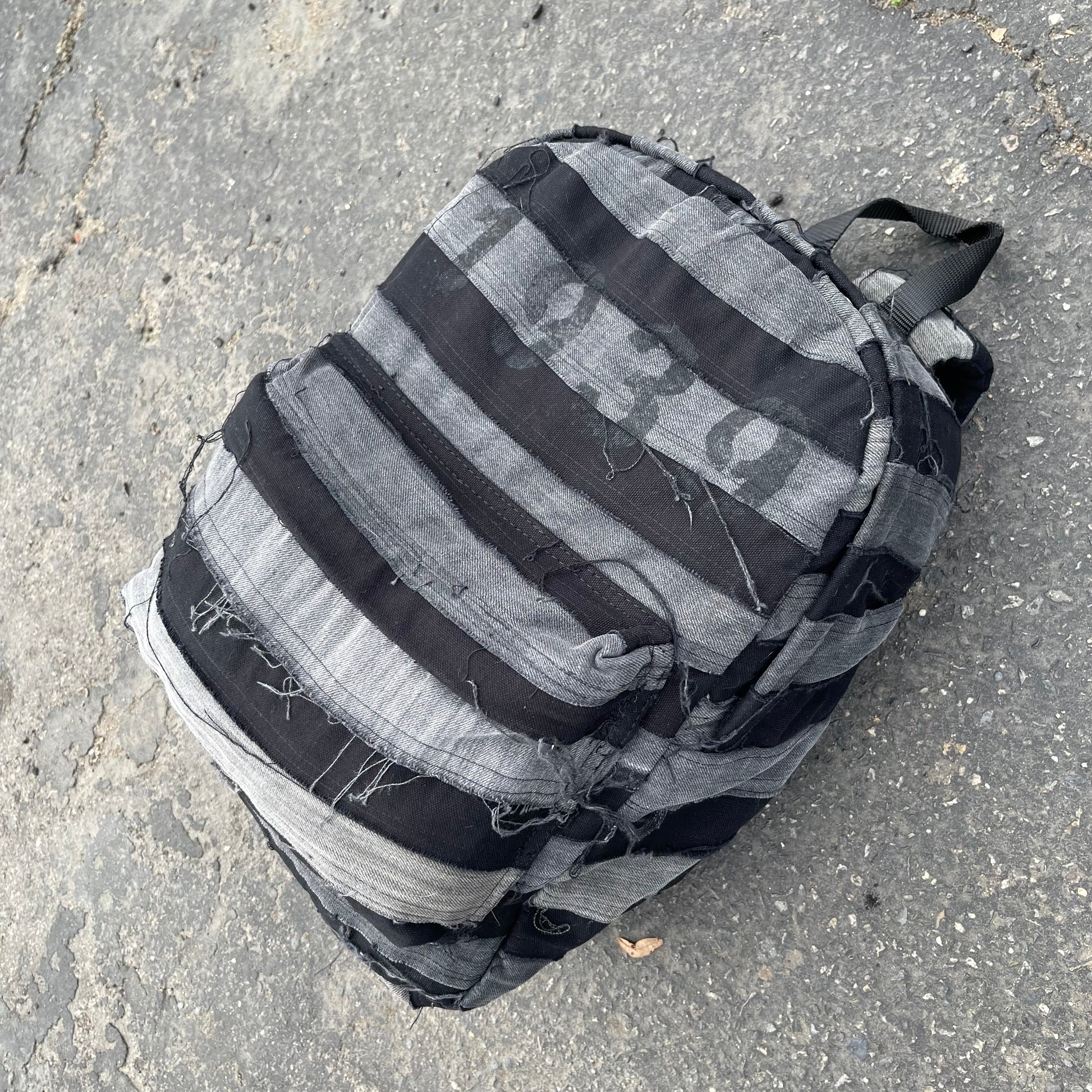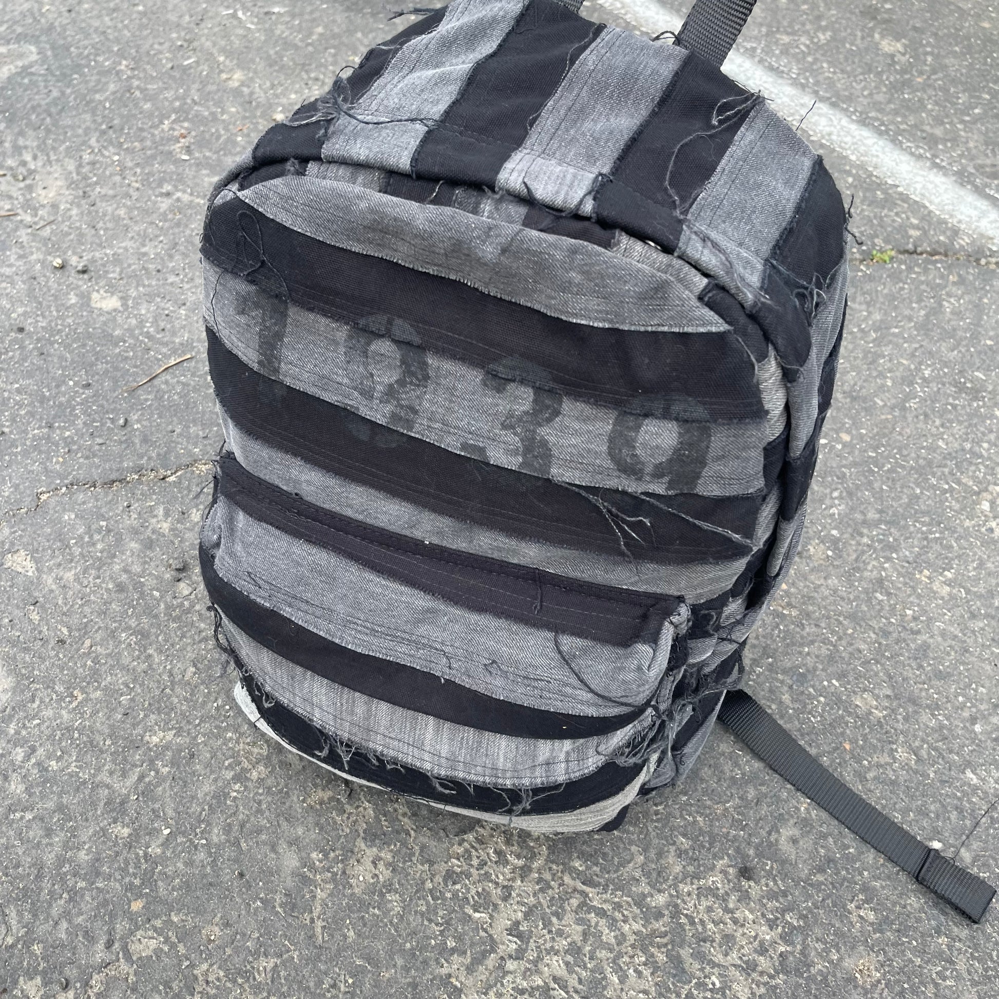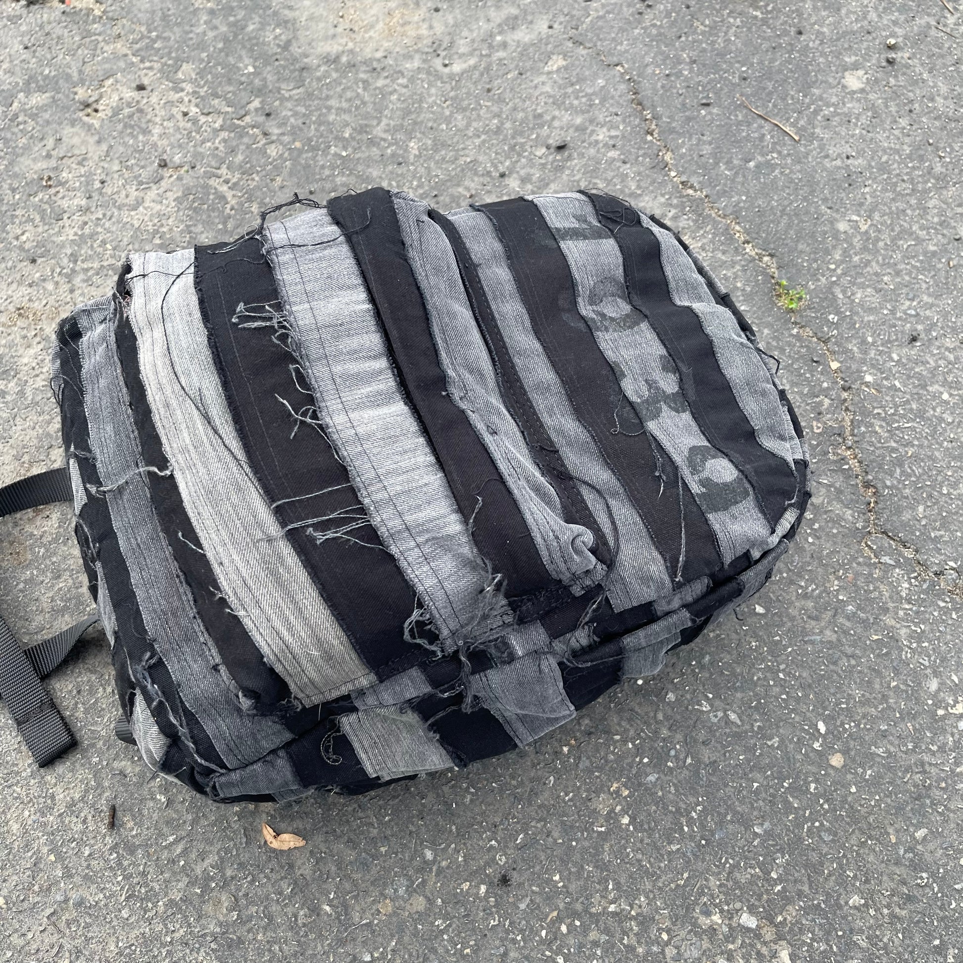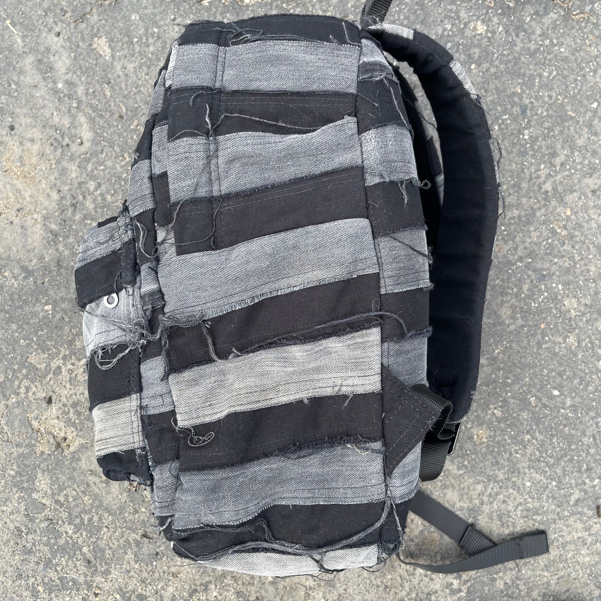 Black and grey striped patchwork denim bag using all 100% cotton denim as always