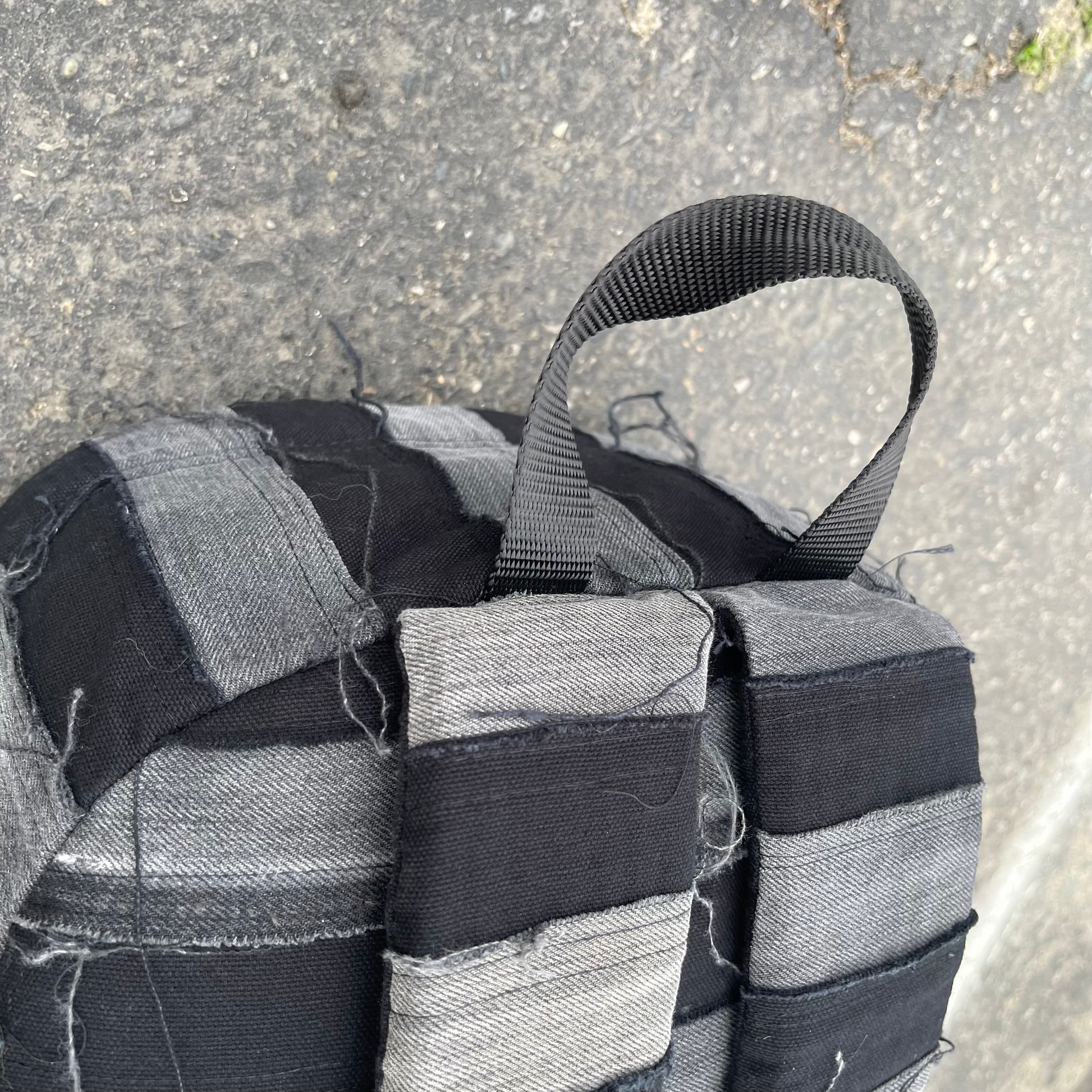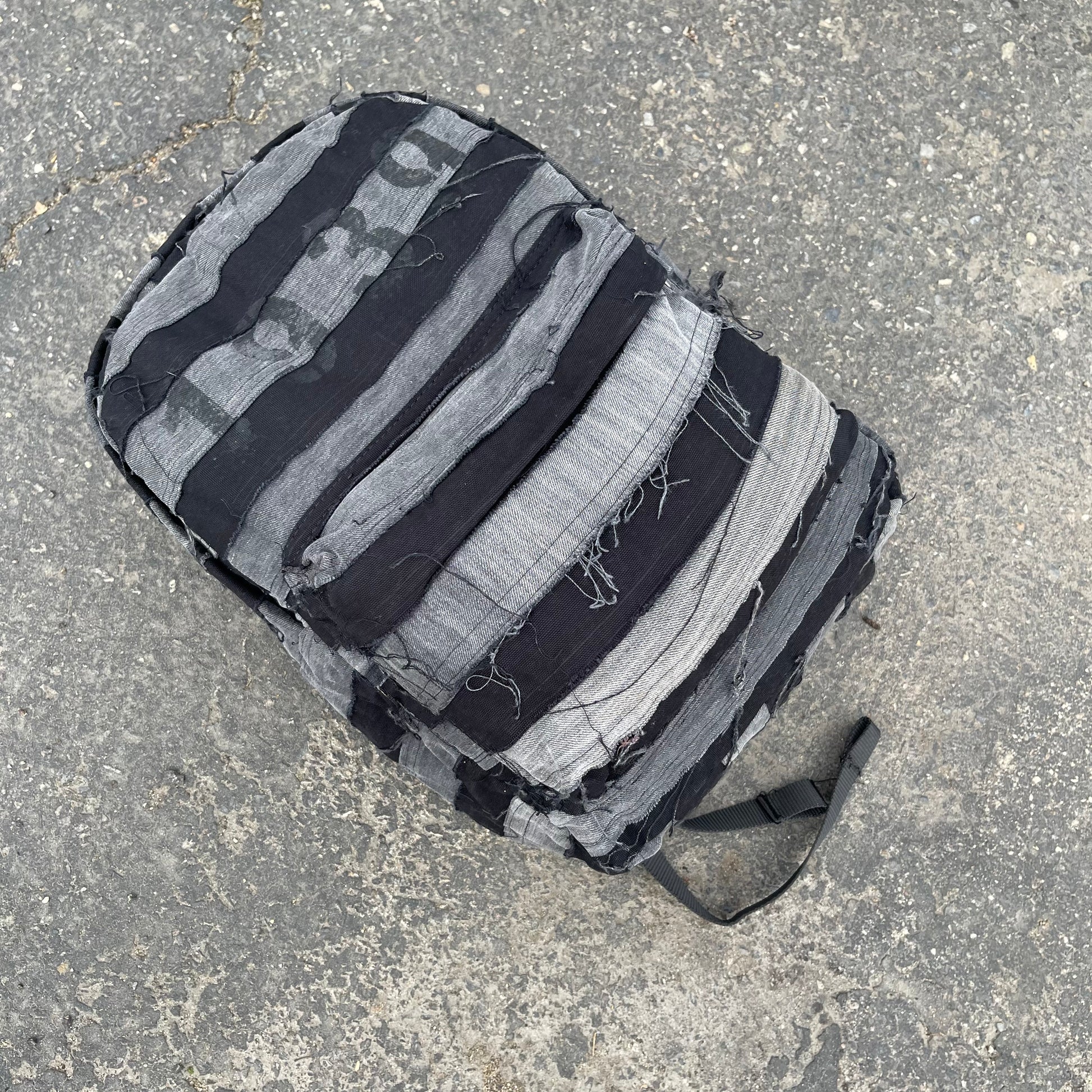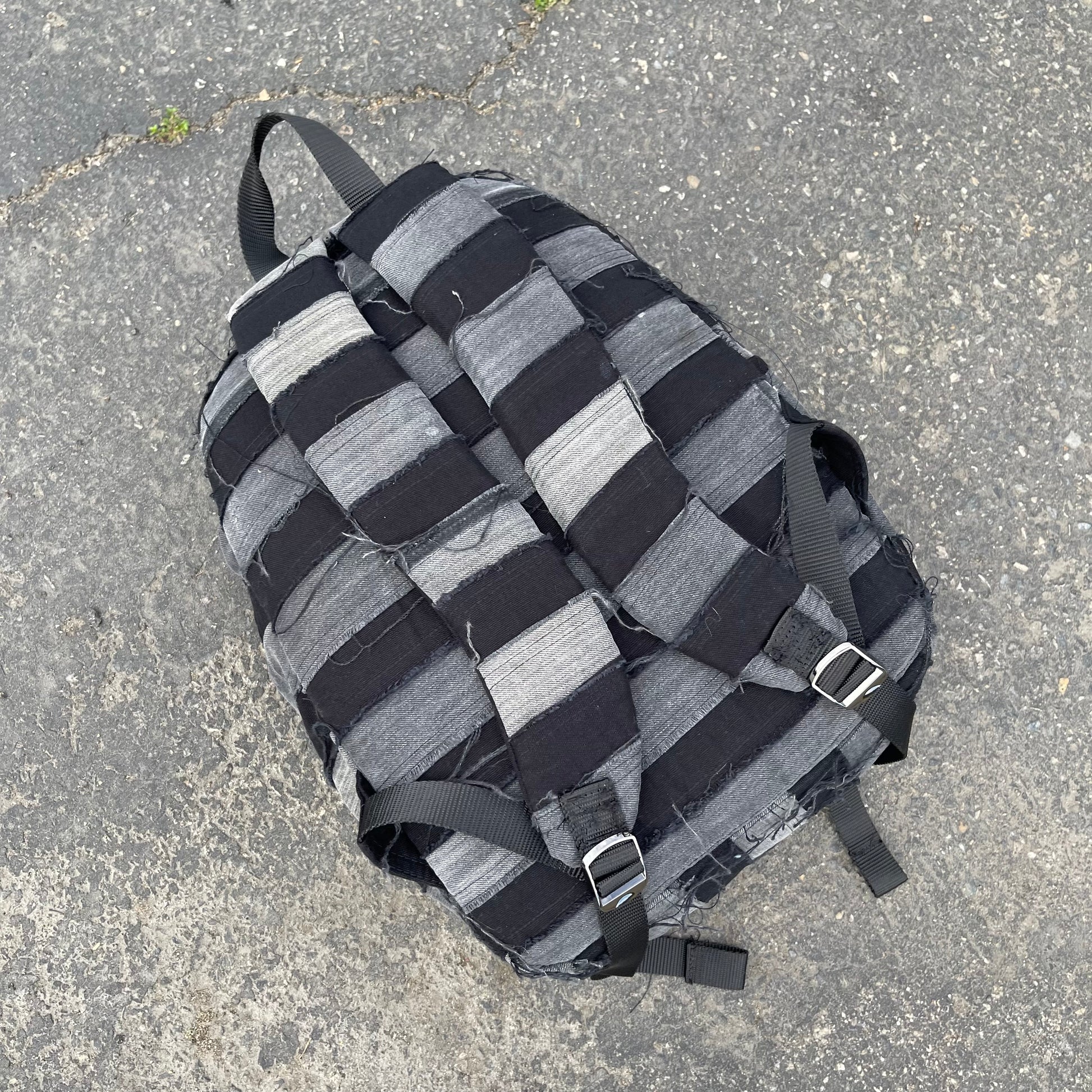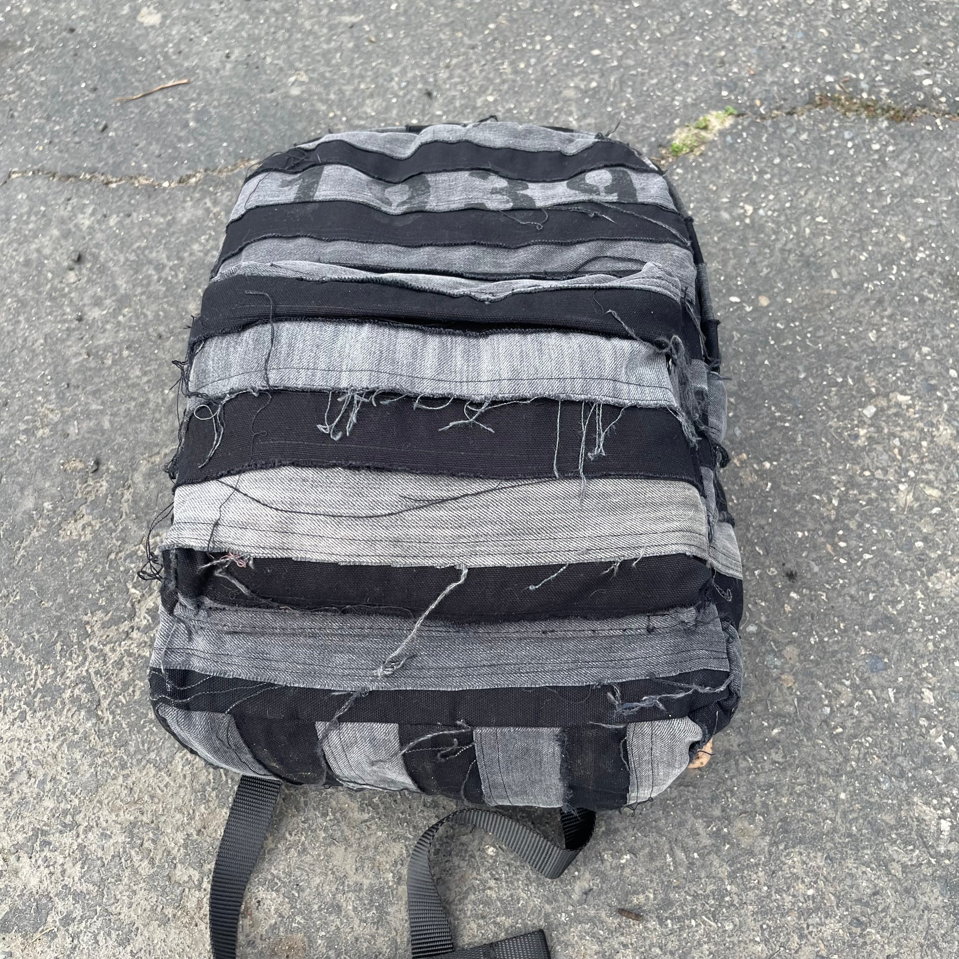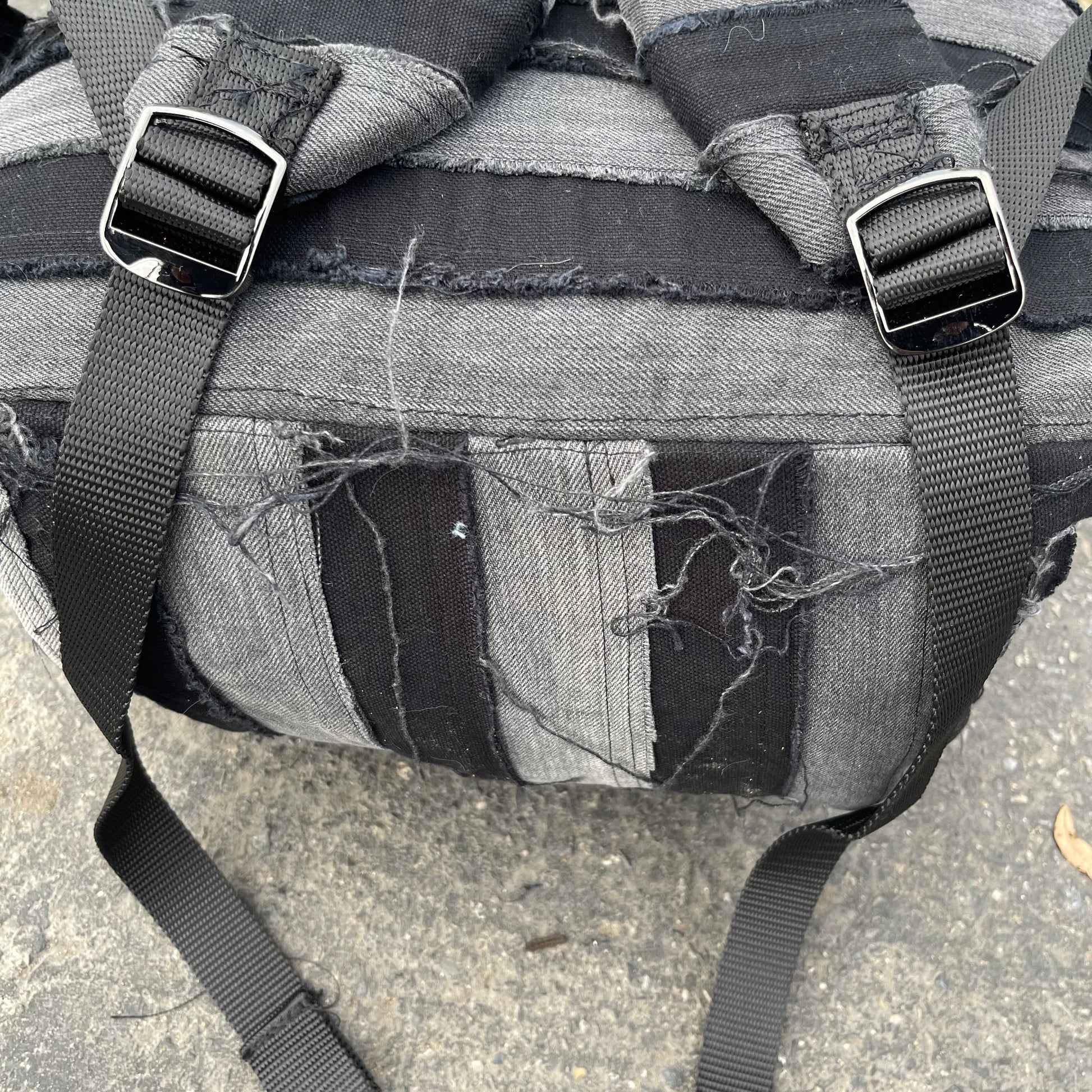 Black and grey striped patchwork denim bag using all 100% cotton denim as always